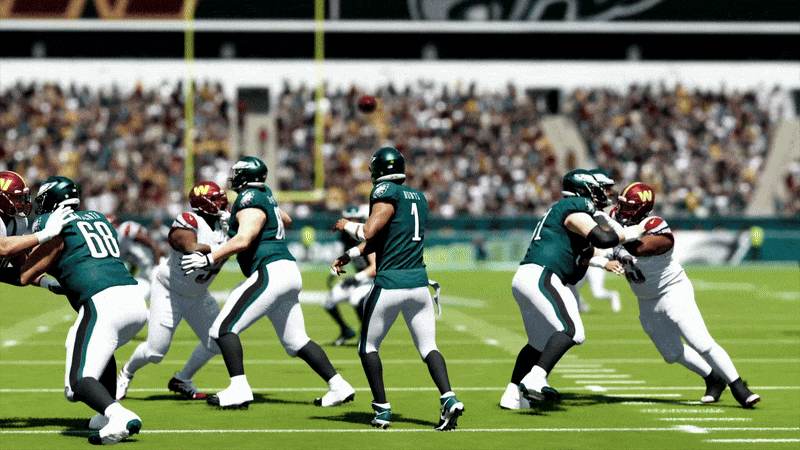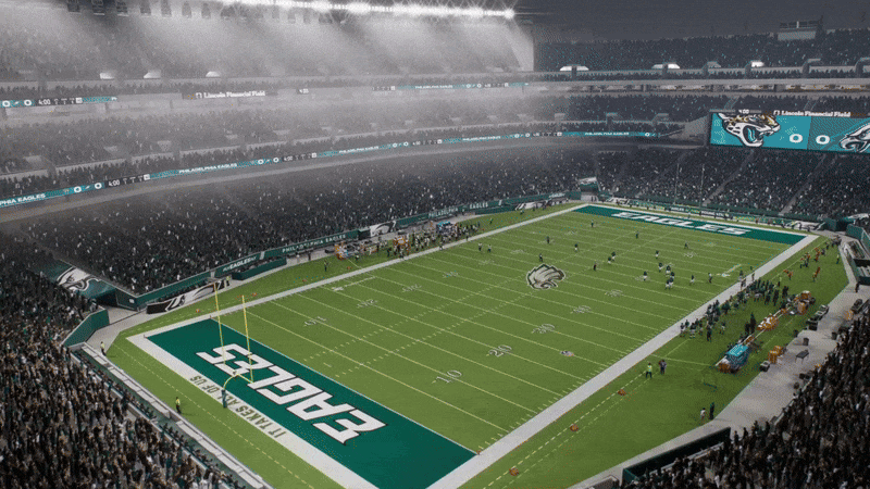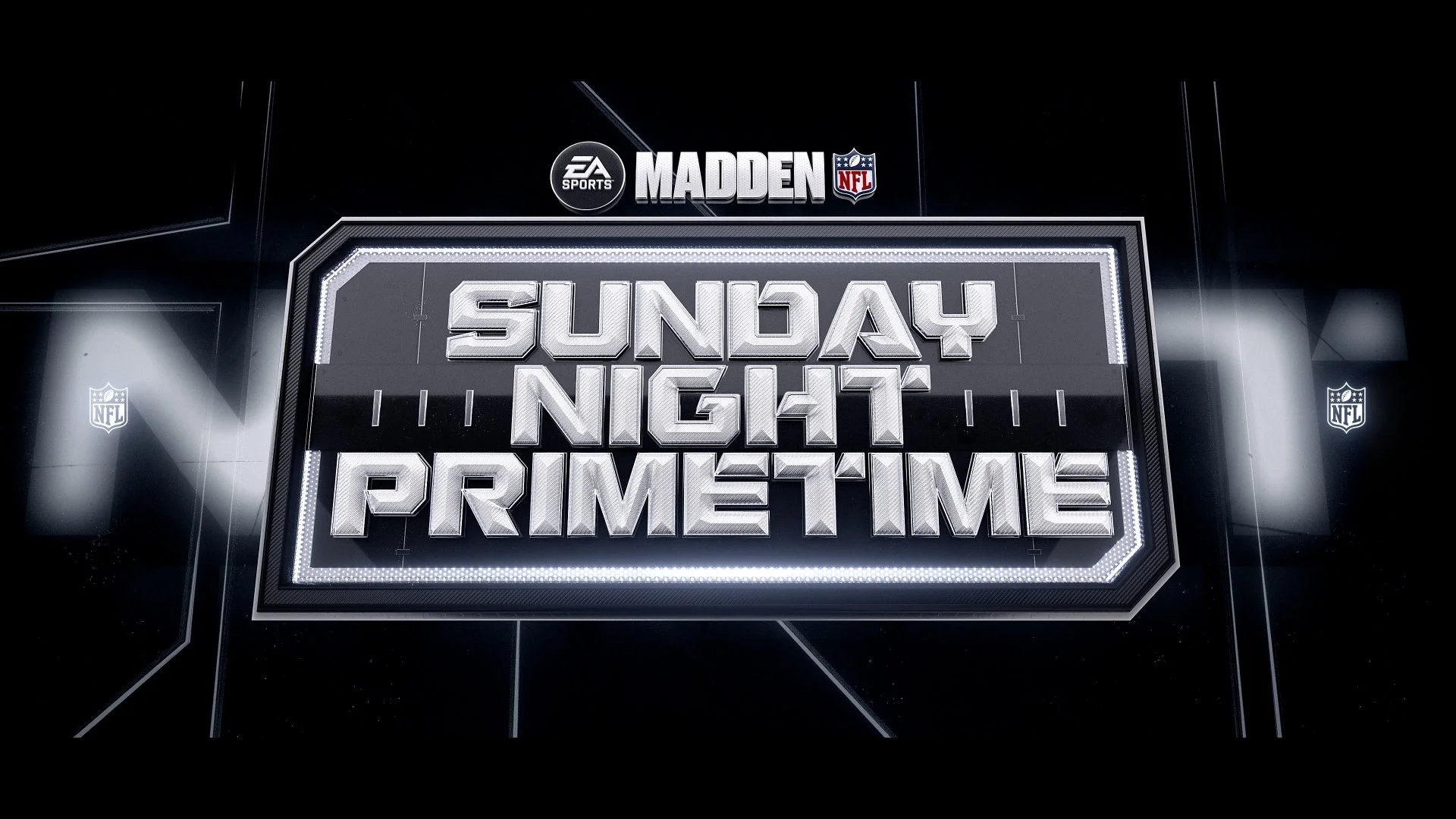 EA SPORTS tasked us with redesigning the in‑game graphics packages for Madden NFL 26, creating unique looks for each broadcast. The Sunday Night Football package drew from classic broadcast aesthetics: grand scale, bold metallic forms, dramatic reflections, and high-impact visuals that match the energy of a prime-time game.